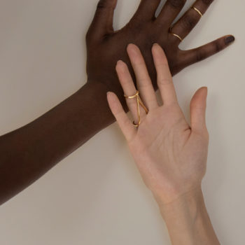 Inspired by fundamental geometric shapes from various cultures and Alexander Calder’s mobiles, Ambre sculpts the brass wire directly onto the body before gilding it with fine 24-karat gold. These sculptural pieces of jewelry highlight the silhouettes by elegantly emphasizing the movements of the body.