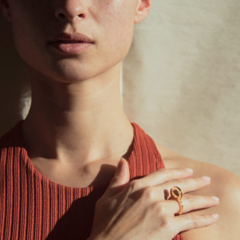 Inspired by fundamental geometric shapes from various cultures and Alexander Calder’s mobiles, Ambre sculpts the brass wire directly onto the body before gilding it with fine 24-karat gold. These sculptural pieces of jewelry highlight the silhouettes by elegantly emphasizing the movements of the body.