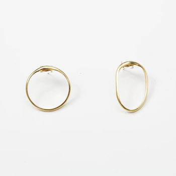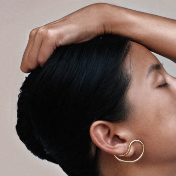 さまざまな文化に見られる基本的な幾何学図形とアレクサンダー・カルダーのモビールアートからインスピレーションを受けたシリーズ。アンバーが自身の体の上で直接真鍮の針金を造形し、24K純金でメッキをかけます。彫刻的に作られたジュエリーは、体の動きを優雅に強調することで身に着ける人のシルエットを際立たせます。
