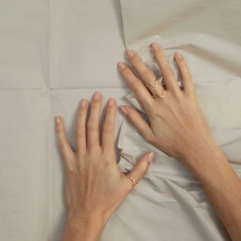 S’inspirant de formes géométriques élémentaires issues de diverses cultures et des mobiles d’Alexander Calder, Ambre sculpte le jonc en laiton à même la peau avant de le dorer à l’or fin 24 carats. Ces bijoux-sculptures rythment les silhouettes en soulignant les mouvements du corps avec élégance.