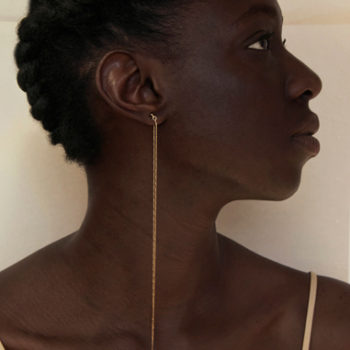 S’inspirant de formes géométriques élémentaires issues de diverses cultures et des mobiles d’Alexander Calder, Ambre sculpte le jonc en laiton à même la peau avant de le dorer à l’or fin 24 carats. Ces bijoux-sculptures rythment les silhouettes en soulignant les mouvements du corps avec élégance.